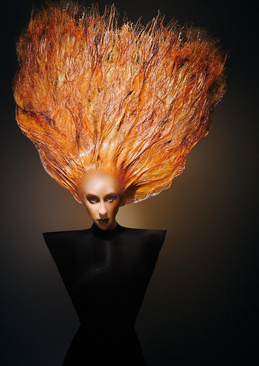 Using resin, Adrian Paoluccio captures the effect of hair suspended in motion.