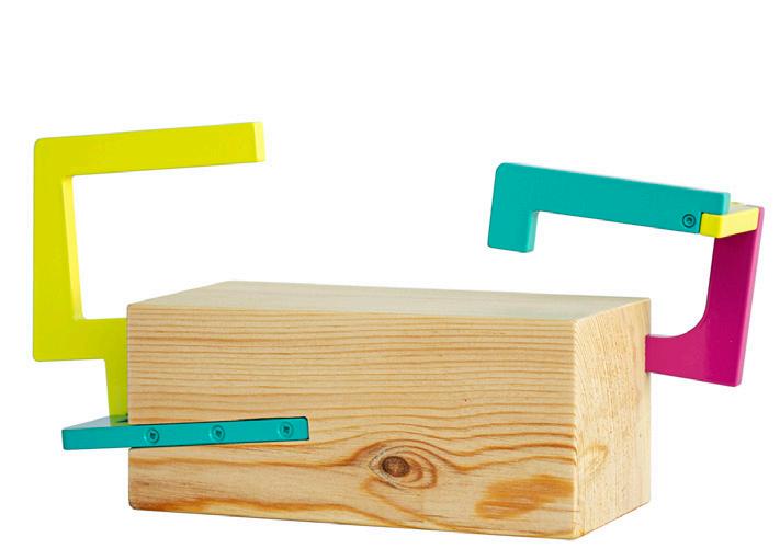 Composición horizontal abierta acero lacado y madera de pino 15x29x9 cm