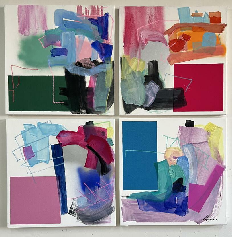 Rebeca Ferrero Pachisi mixta sobre lienzo (Instalación de 4 piezas) 124x124 cm
