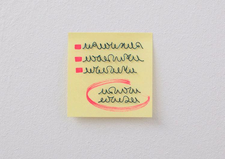 Post it Alambre y acrílico sobre papel 7,6x7,6 cm