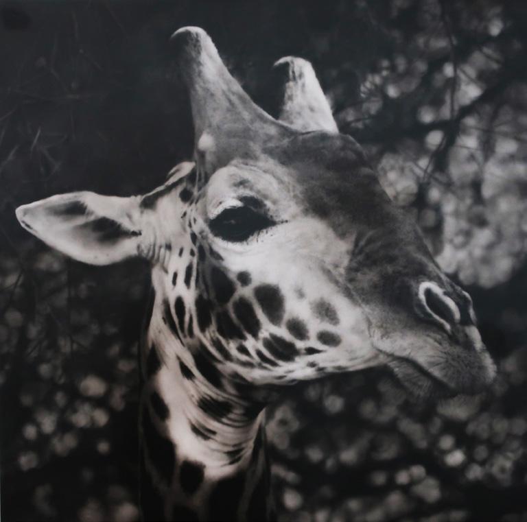 Cabeza de jirafa Grafito y acrílico sobre papel encolado a tabla 90x90 cm