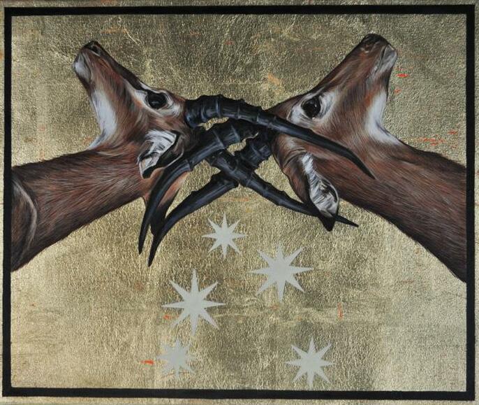 Bestiario óleo, esmalte y pan de oro sobre lienzo 81x65 cm