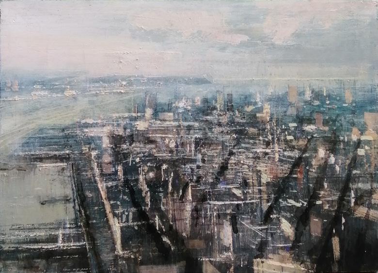 Luz gris en Nueva York óleo sobre tabla 29x40 cm