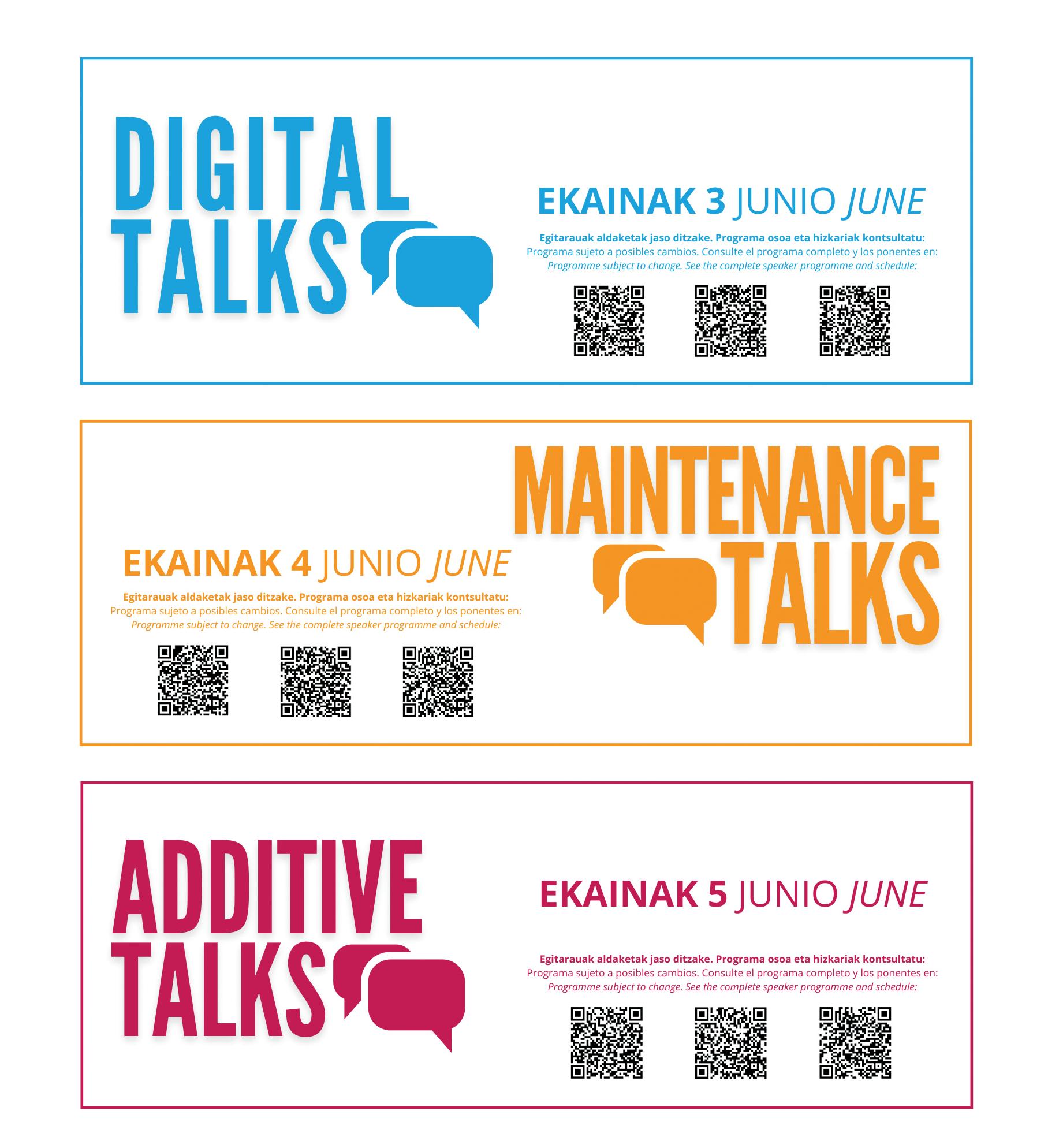 Aldi berean, +INDUSTRYren konferentzien programak industriaren etorkizunean erabakigarriak izango diren joera nagusiak, garapenak eta oraingo eta etorkizuneko erronkak sakontzeko aukera paregabea eskainiko du azterketa egiteko esparruen bidez. Horietako batzuk izango dira, adibidez, Digital Talks, Maintenance Talks eta Additive Talks.
