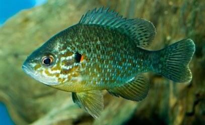 “And there are a lot of varieties to catch. Largemouth bass—those are the most fun to fish for—there are some very big ones in there! We also have bluegill, which is a type of sunfish, also a native variety called the pumpkinseed sunfish. You don’t see them often, but we also have American eels in these freshwater ponds, and surprisingly, blue crabs sometimes make their way in, too.