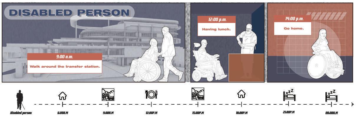 Reveal how people use the transfer station and its ancillary space through 6 user groups