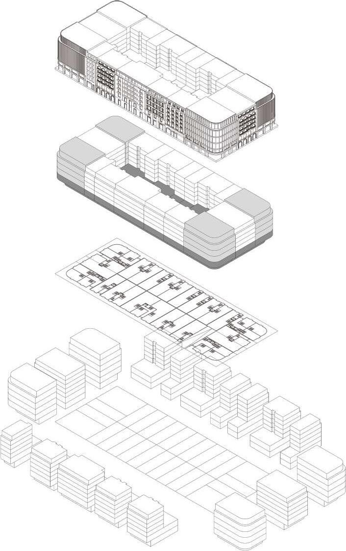 03. The ground floor is 3m back along the street, and the rest of the space can be filled 04. The building with more than five floors in the plot is set back by 1m along the street