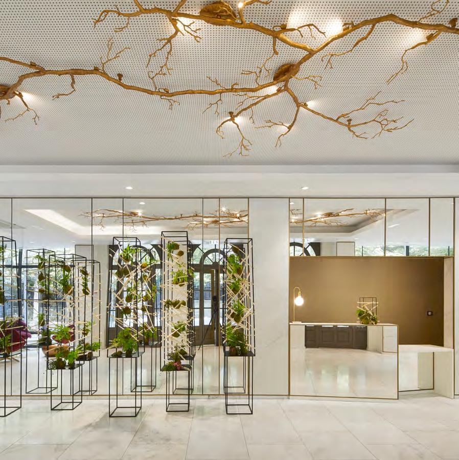 L’entrée du pavillon Gabriel se présente comme un jardin suspendu dont les sun lights dialoguent avec la ville.
