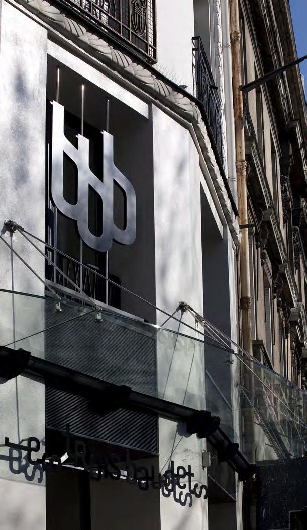 Horizontales par rapport à la continuité du garde corps, verticales par rapport aux descentes des poteaux de structure existants. La nouvelle façade du théâtre des 3 baudets redonne un visage plus urbain et plus didactique au quartier permettant ainsi de glisser entre une architecture des années 1930 et contempo-raine.