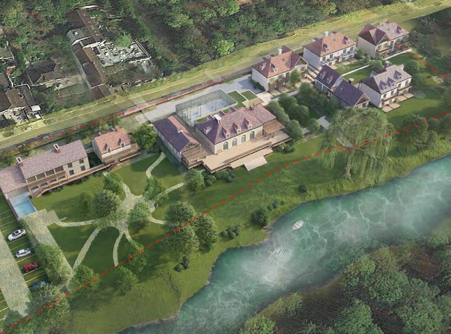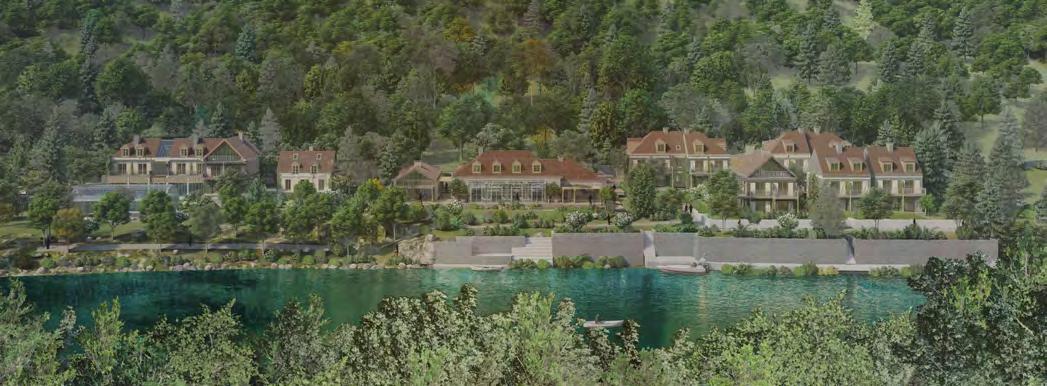 Le long de la Seine, au pied des falaises de craie, ce site malmené par le temps et les constructions qui ont gommé la lecture de la géographie naturelle du site, renait grâce à un projet qui fait revivre le paysage. La volonté est de créer dans cet écrin naturel une structure adaptée à son environnement, offrant un éventail d’hébergements et d’activités variés, afin de répondre aux vœux d’une clientèle citadine de venir s’immerger dans la nature. L a composition du plan de masse repose sur la volonté d’organiser, tout au long de cette portion de route, un séquençage alternant espaces bâtis de différentes typologies et percées visuelles, et libérant différents lieux de paysages