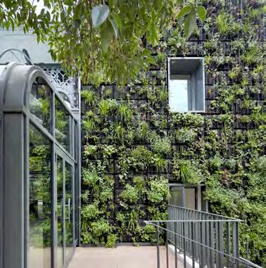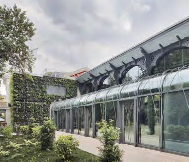The entrance to the Gabriel pavilion is presented as a hanging garden, where sun light dialogues with the city.
