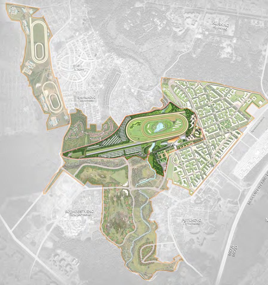 Client / Client : Société Mozoblezmstroy • Lieu / Location : Moscou, Russie • Programme/ Program : champ de courses, tribunes, club hippique, centre d’entraînement / Racetrack, stands, riding club, training center • Architectes / Architects : Bechu & Associés • Superficie / Surface Area : 395 ha • Statut / Status : Projet 2008-2011 / Project 2008-2011
