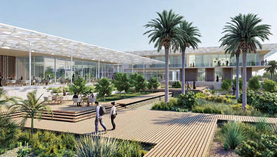 Haut lieu d’avant-garde architecturale écoresponsable avec 80% de passivité énergétique, le campus universitaire UM6P est la vision d’une nouvelle façon d’enseigner, par l’intégration de laboratoires de recherche vivants dédiés aux nouvelles technologies environnementales et au biomimétisme.