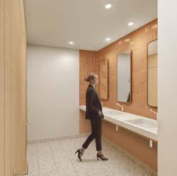 The use of natural materials such as wood, terrazzo and porcelain stoneware contributes to a serene and sophisticated atmosphere. The renovation is intended to be a virtuous circle, giving priority to the re-use of materials, up to 40% in particular for the terrazzo. On the landings, acoustics are managed by a woven, bio-sourced and eco-responsible floor, treated with a rounded shape to soften the spaces.