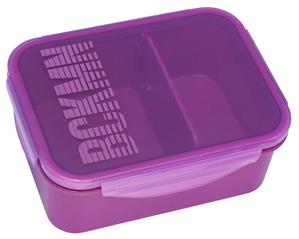 Matboksen lukker helt tett og har en praktisk skillevegg. Den har plass til en liten yoghurt. Tåler oppvaskmaskin og mikrobølgeovn.
