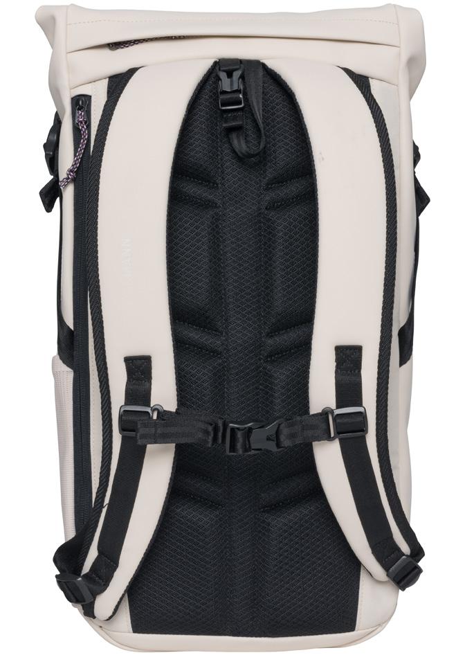 1. Komfortabel polstring i ryggen og på skulderremmene 2. Brystreim 3. Utvendig rom for drikkeflaske på begge sider 4. Integrert regntrekk 5. Anatomisk formet ryggspile 6. God lufting i rygg 7. Eget rom til laptop 8. Vannavvisende og resirkulert materiale