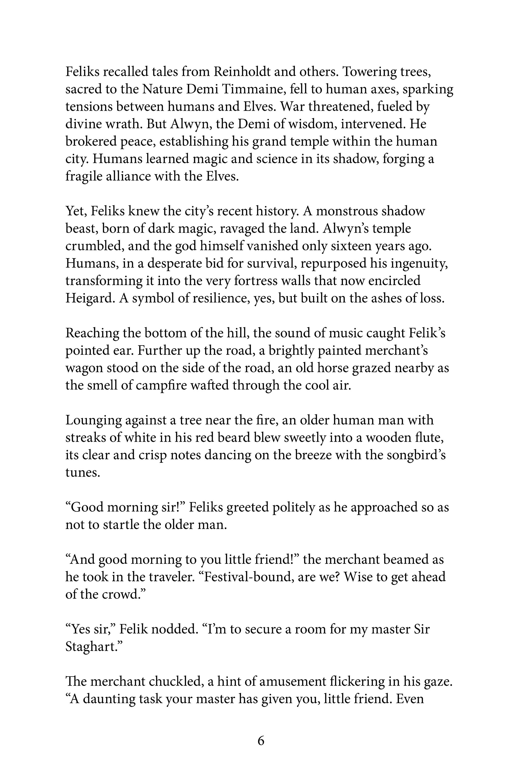 Unprepared but determined, Feliks joins forces with an eccentric Elven ranger and a spirited but jinxed princess. Together, this unlikely fellowship must embark on a perilous quest that will take them beyond rolling plains and verdant forests, all the way to the celestial halls of the Gods. In a desperate battle for love, courage, and the very fate of the world, Feliks will discover that true heroism can bloom in the most unexpected places.