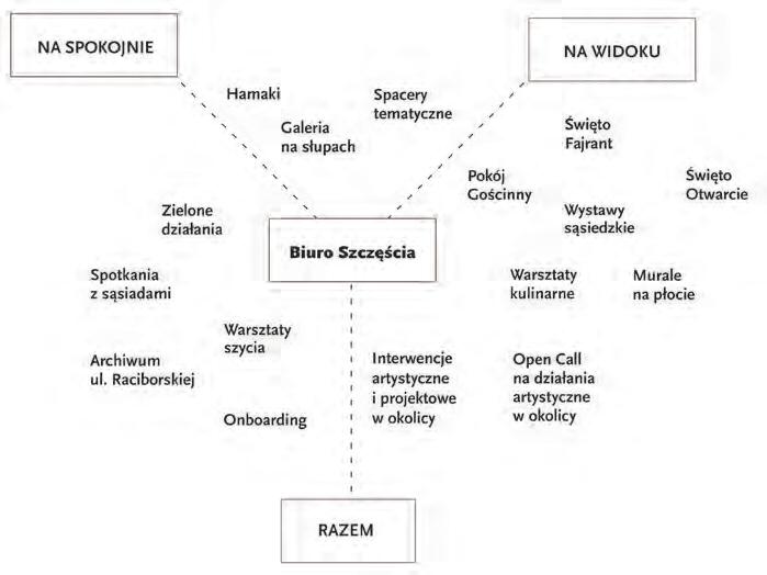 Laboratorium badań nad szczęściem. Życie po komfortocenie jest więc dość złożonym projektem badawczo-artystycznym koncentrującym się na prognozowaniu scenariuszy, które starają się uchwycić i nazwać nasze potrzeby. Wiele z nich wkrótce zastąpi dotychczas przyjęte zwyczaje i nawyki. Laboratorium miało za zadanie sieciować środowisko sztuki, nauki, dizajnu, technologii i przedsiębiorczości. Kiedy przeczytacie raporty dotyczące działań przeprowadzonych w ramach projektu od 2022 r. przez zaproszone instytucje kultury i sztuki, zobaczycie, w jak wielu złożonych konstelacjach były one realizowane.