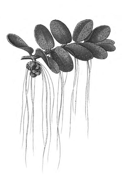 The floating fern (Salvinia natans) has no roots – this function is served by one of the leaves below the water’s surface.