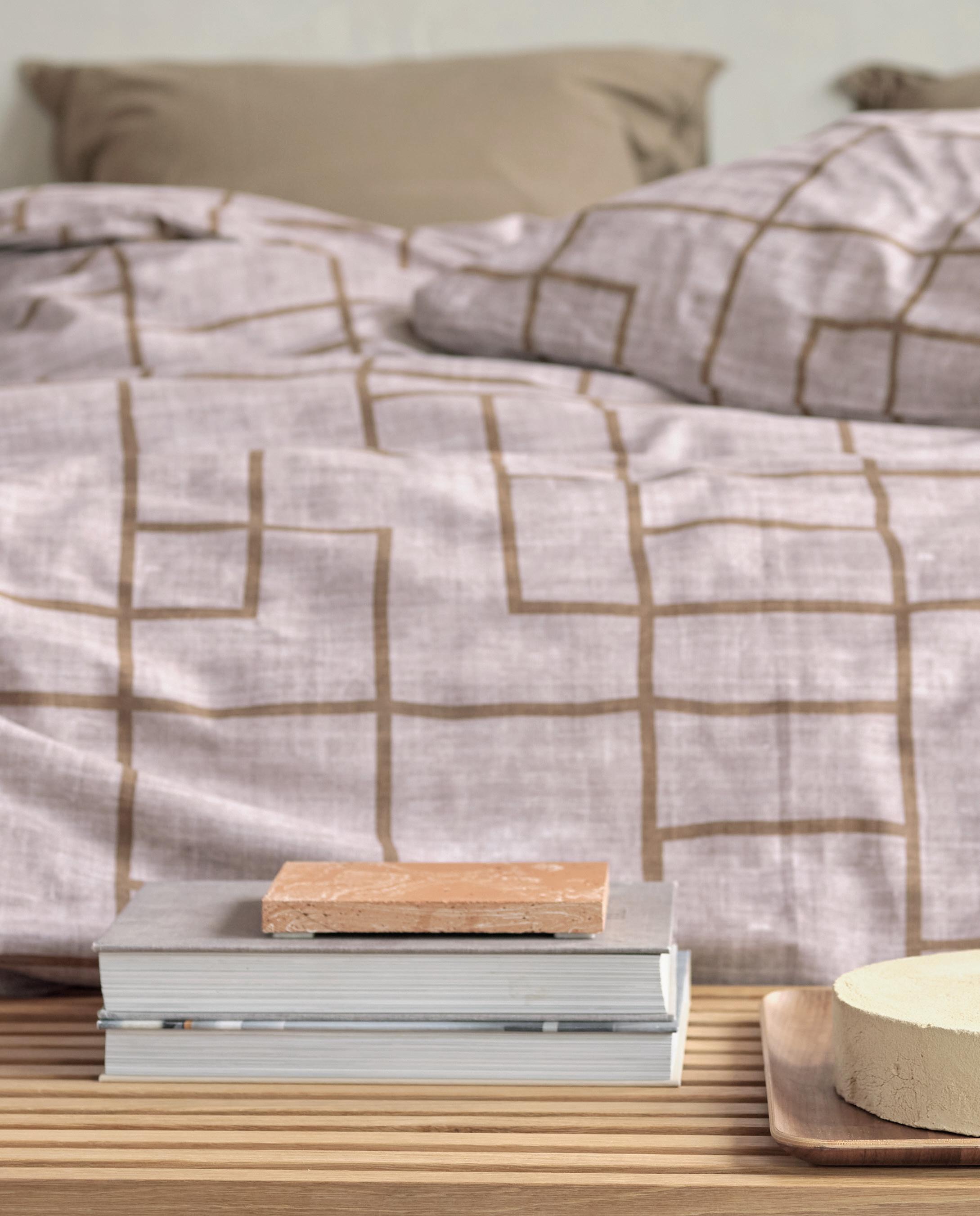1. Broom Bow Cushion Natural 40x60 cm 2. Fitted Sheet Cover Grey 3. Groove Anthracite 70x140 cm
