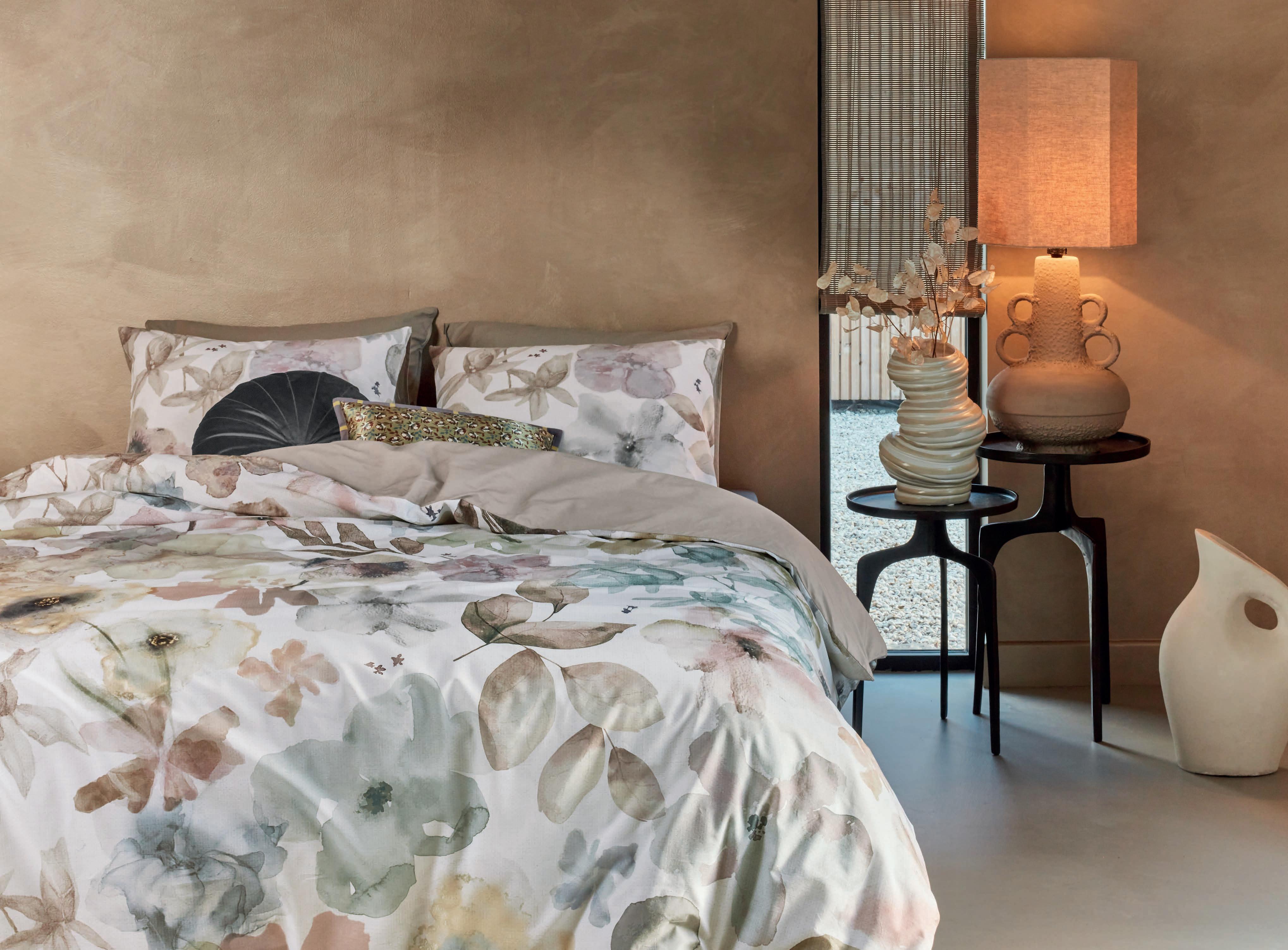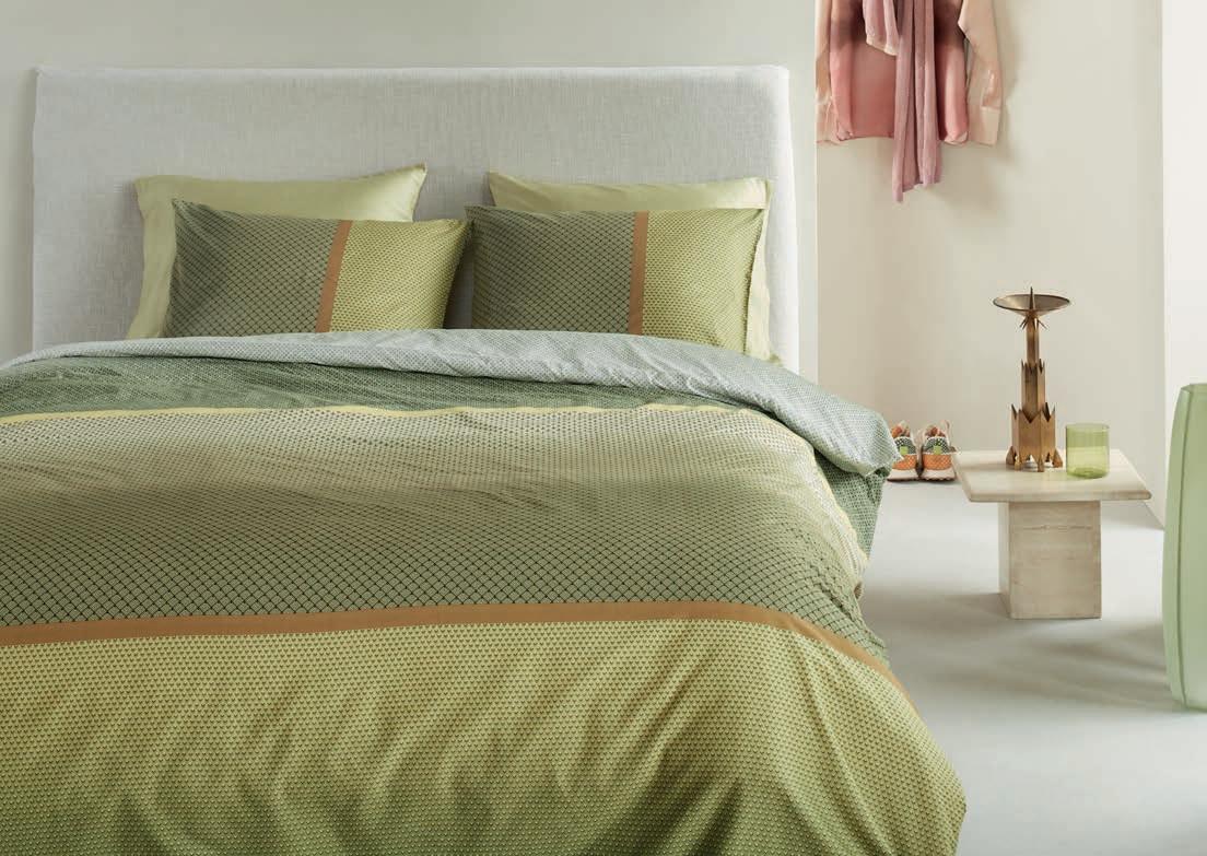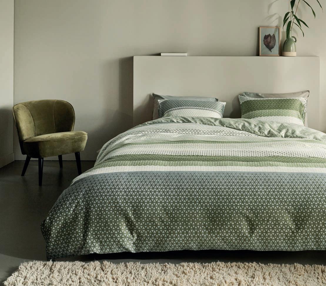 240 x 200/220 cm € 129,95 € 79,95 Alluring Natural, Olive Green & Blue Green 100% katoensatijn
