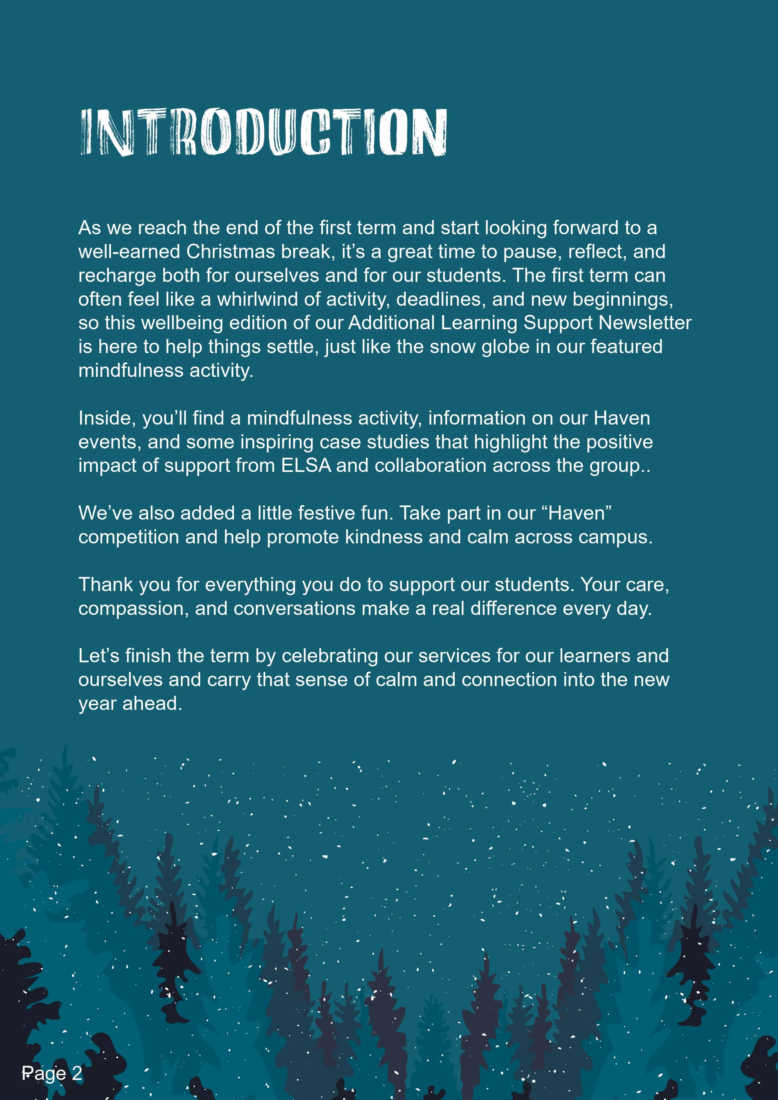 This issue shines a spotlight on everything happening across our Havens, from lunchtime clubs and creative activities to emotional regulation support and collaborative success stories. You’ll also find a calming mindfulness activity, key EDI dates for your diary, insights from our ELSA team and a festive round-up from the Haven Christmas Showdown.