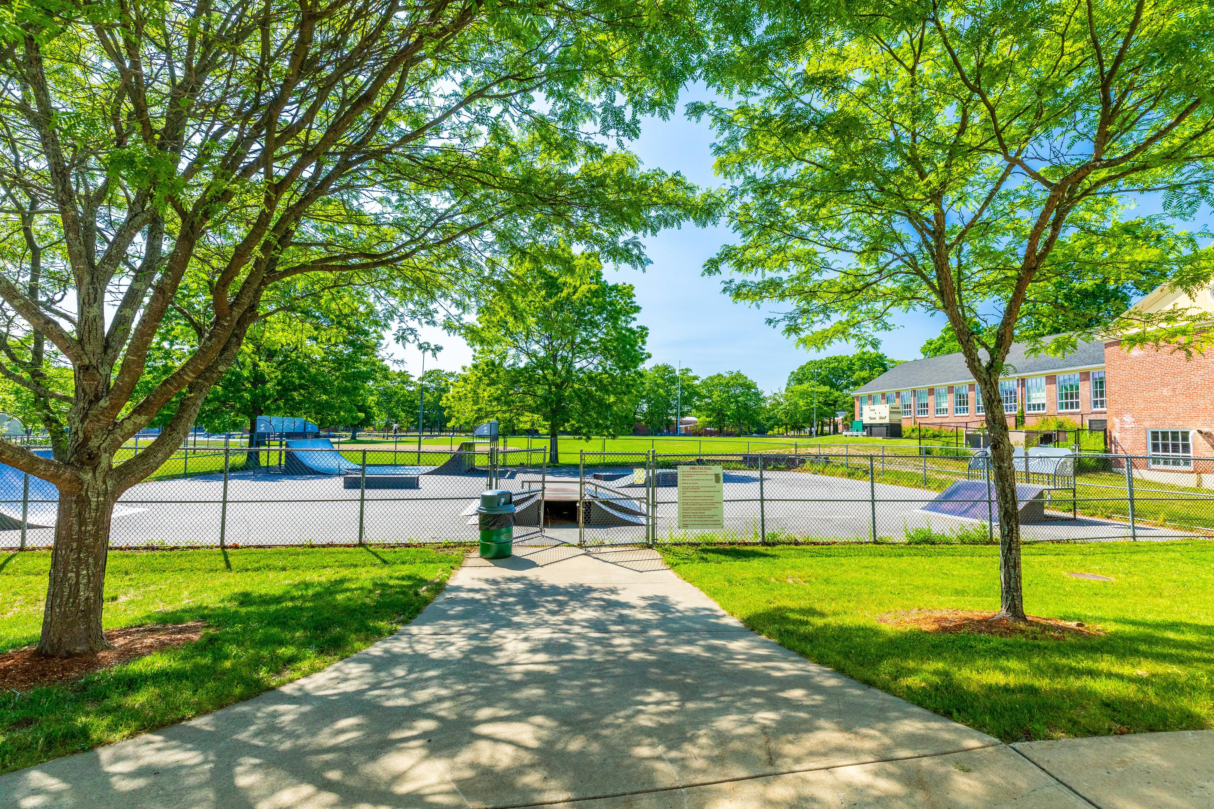 The Bedford High School Campus is alive with athletic events and multigenerational activity! The area boasts multiple athletic fields, tennis courts, outdoor basketball courts and areas for exercise and passive recreation.