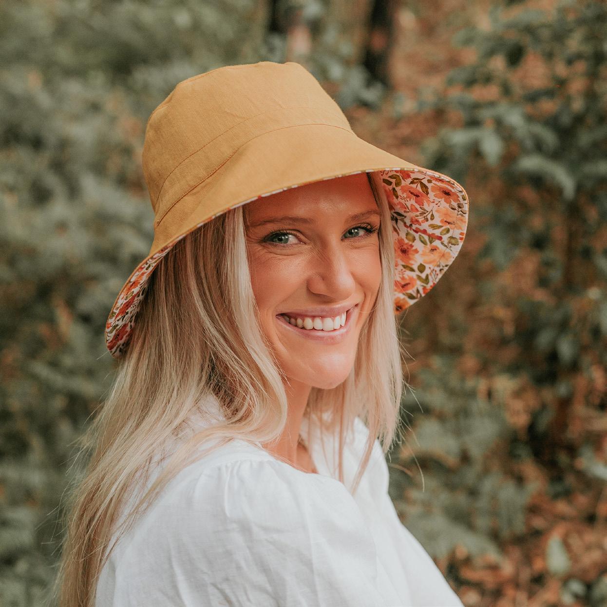 We’ve looked to the world around us for the Heritage palette – moss greens, mustards, stones, dusty pinks and grey/blue feature in the base range, while classic stripes, everpopular florals and hits of nature inspire the patterns. It’s a classic aesthetic popular with women across Australia looking to accessorise their wardrobe and stay sun safe. For those who love to match their family, our ladies hats coordinates with our children’s styles for a coordinated look.