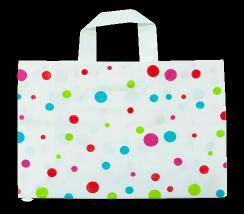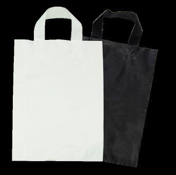 These high density plastic bags come with strong flexi loop handles and cardboard support in the base.