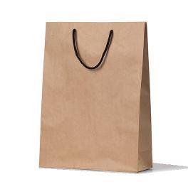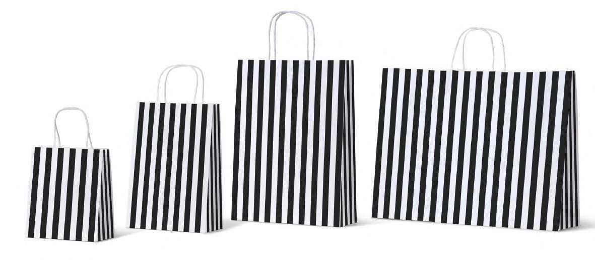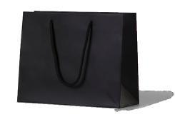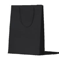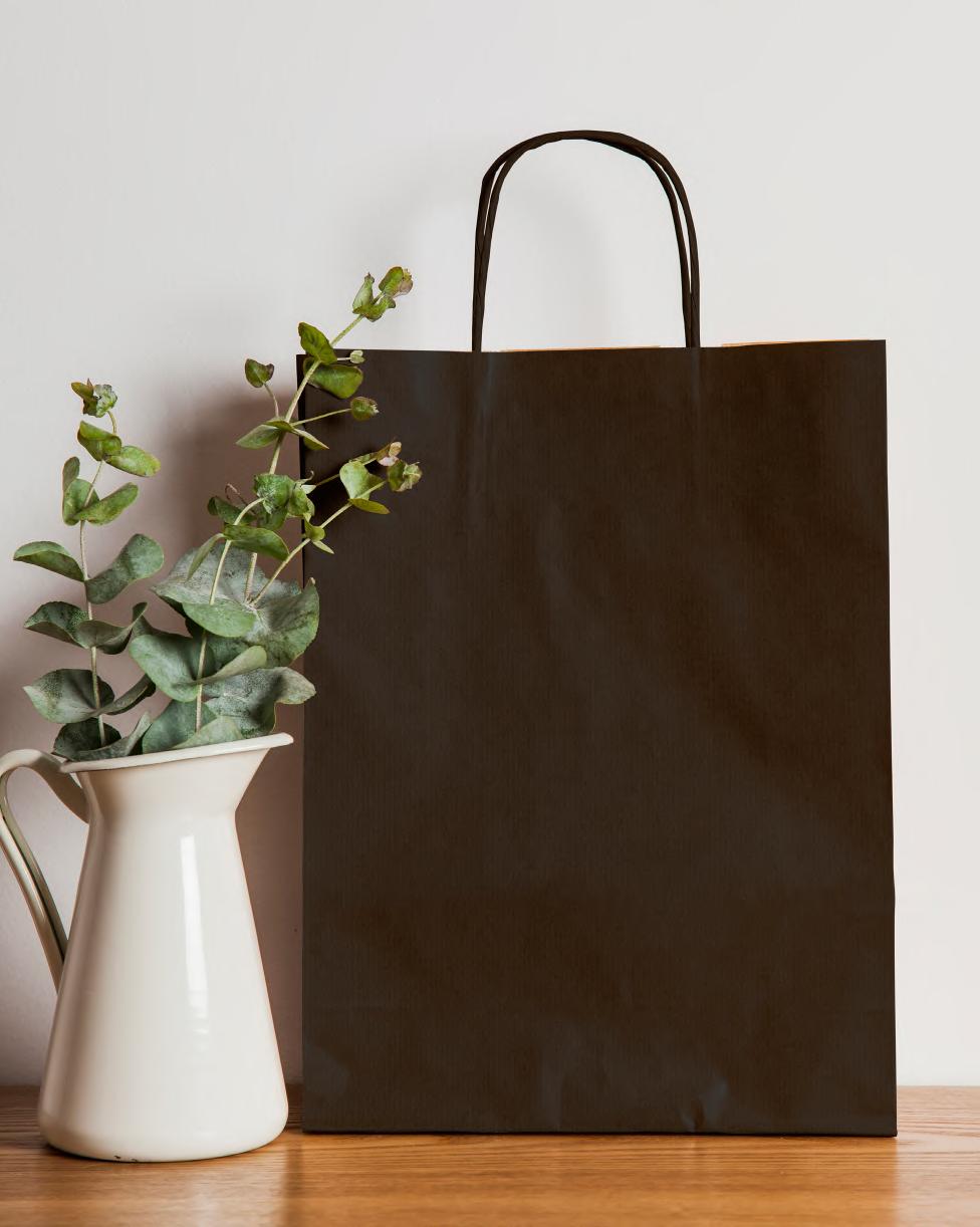 Our black on kraft paper bags are made from FSC-certified paper and come with twisted black paper handles. Made of thick (140gsm) kraft paper with a matte varnish finish, these bags are strong and come in 6 versatile sizes. They are 100% recyclable and available for custom print.