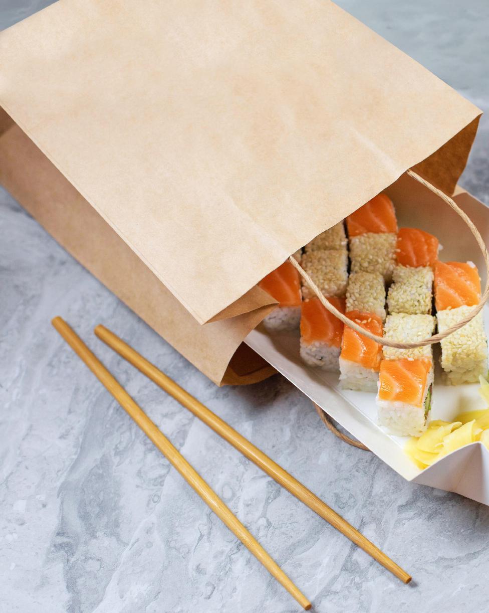 Our takeaway food carry bags are made out of high quality responsibly sourced materials. They are 100% recyclable and biodegradable. All bag sizes are available for custom print.
