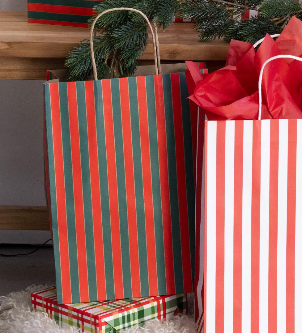 Our kraft paper bags are made out of high quality 110 gsm responsibly sourced paper. They feature reinforced twisted paper loop handles, come in 11 versatile sizes and are 100% recyclable and biodegradable.