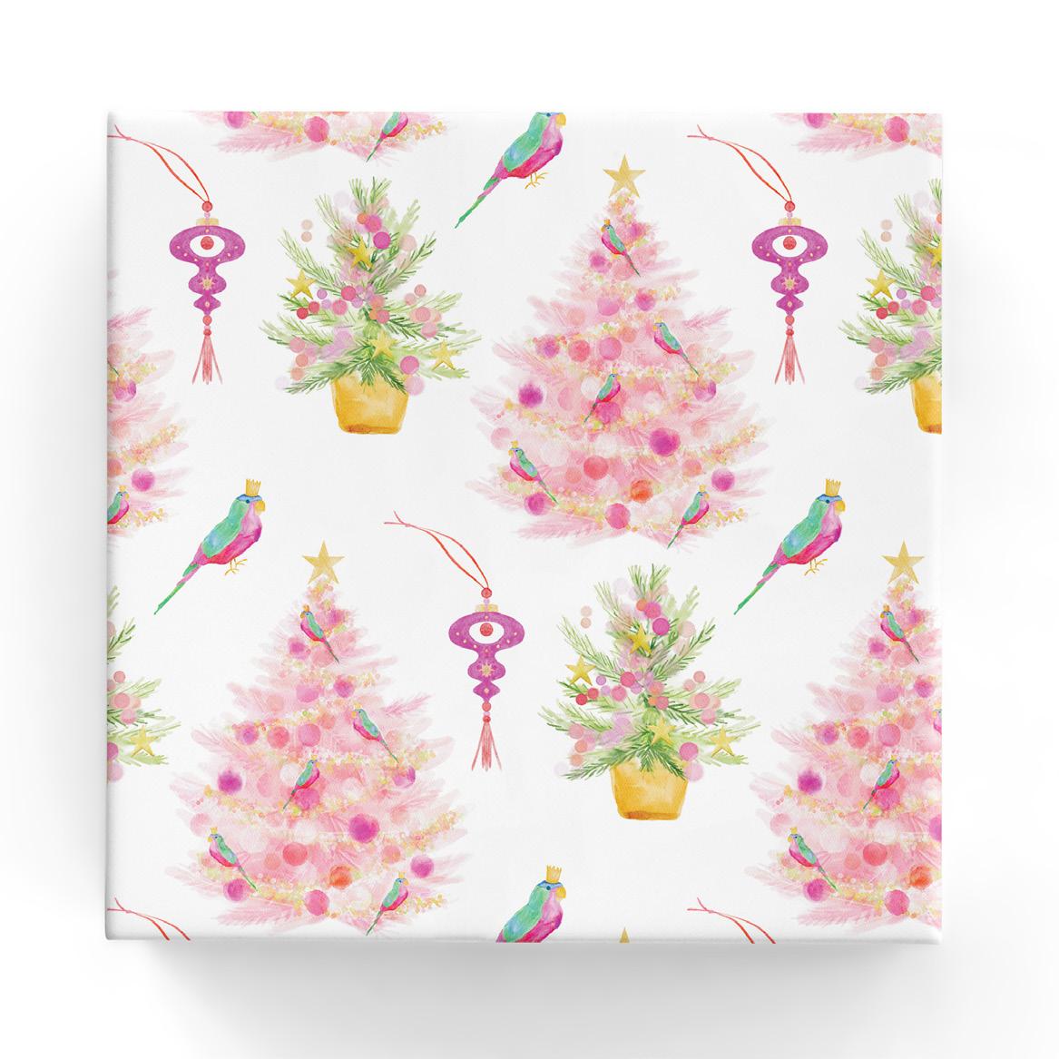 Xmas Pink Watercolour Tree on gloss