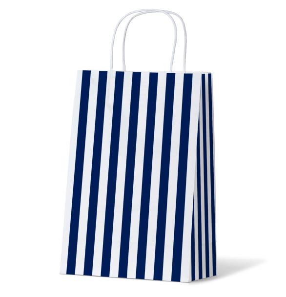 Our Cafe Stripe Bags are made with thick 150gsm White Kraft and strong Paper Twist Handles. The NEW Medium size has a generous 120mm deep gusset, and the MIDI Boutique has an extra wide 150mm gusset.