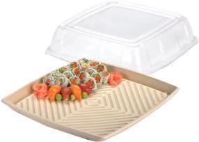 Moulded-fibre pulp products are made of a sugar cane manufacturing by-product, called Bagasse, an abundant and renewable resource. In the food packaging sector, this natural cellulose is one of the best sustainable alternatives to plastic. It meets all requirements and is not in any way harmful. It is oven proof, microwavable and freezer friendly. Most importantly, it is 100% compostable (suitable for industrial and home composting) and rapidly biodegradable. It takes only 180 days to decompose 1 pulp platter.