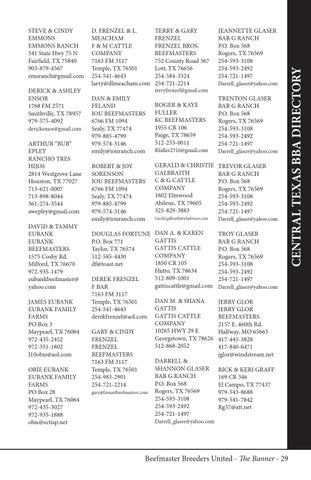 DEREK FRENZEL F BAR 7163 FM 3117 Temple, TX 76501 254-541-4643 derekfrenzel@aol.com GARY & CINDY FRENZEL FRENZEL BEEFMASTERS 7163 FM 3117 Temple, TX 76501 254-983-2901 254-721-2214 gary@frenzelbeefmasters.com
