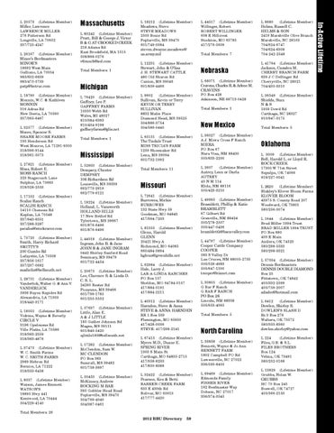 Mississippi L 52603 (Lifetime Member) Dempsey, Chester DEMPSEY 106 Richardson Rd Louisville, MS 39339 662/773-2619 662/779-6121 L 18224 (Lifetime Member) Holland, L. Vansworth HOLLAND HILLS 17 New Bethel Rd Tylertown, MS 39667 601/876-6496 601/876-6496 L 44018 (Lifetime Member) Ingram, John B. & Jane JOHN B & JANE INGRAM 0442 Shirley Sanford Road Seminary, MS 39479 601/722-4454 L 20675 (Lifetime Member) Lee, Clarence S. & Linda D. C. S. L. 24260 Rester Rd Picayune, MS 39466 601/799-1785 601/255-5552 L 57637 (Lifetime Member) Little, Alan E. A & J LITTLE 185 Gather Johnson Rd Magee, MS 39111 601/849-5420 ajlittle185@bellsouth.net L 17282 (Lifetime Member) McClendon, Sam W. MC CLENDON PO Box 363 Sumrall, MS 39482 601/758-3697 L 50453 (Lifetime Member) McKinney, Andrew ROCKING M BAR 395 Gobbler Head Road Poplarville, MS 39470 504/769-4040 504/387-0461