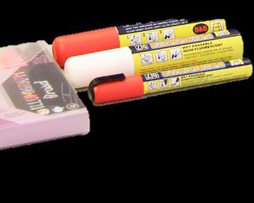 Schrijf je tekst direct op het krijtbord met de verwijderbare krijtstiften