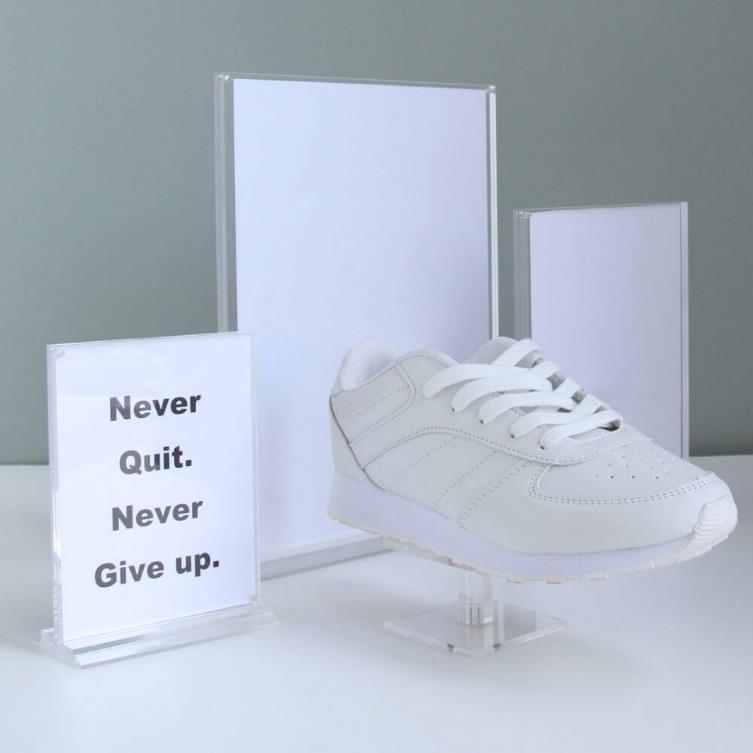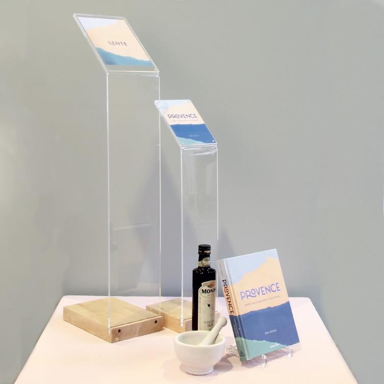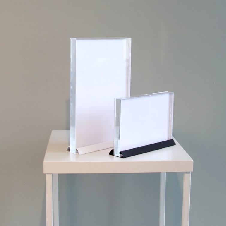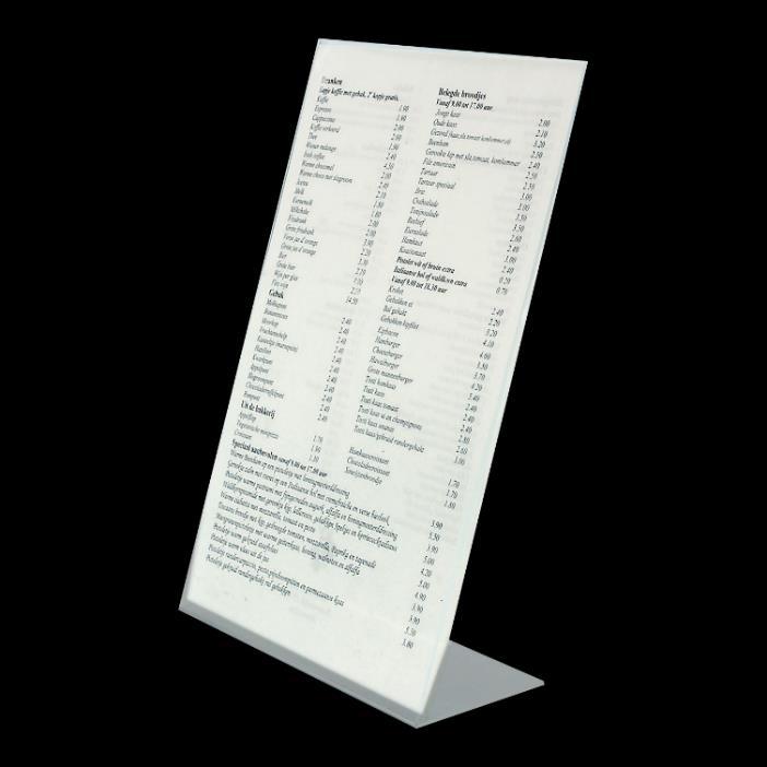 Op goede hoogte communiceren is belangrijk. De uitstraling van deze transparante subtiele standaard is tijdloos dus past bij elke sfeer en elk product. De acrylaat kaarthouder heeft magneetjes waardoor de informatie goed op zijn plek blijft zitten. De standaard is in 2 maten leverbaar:
