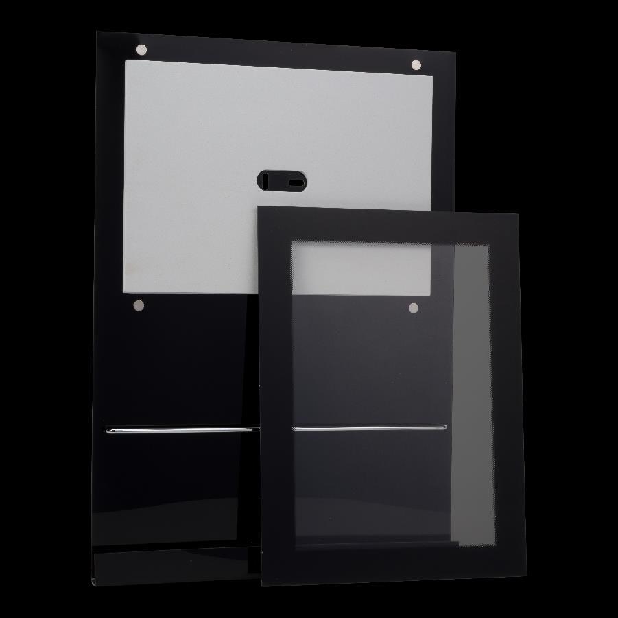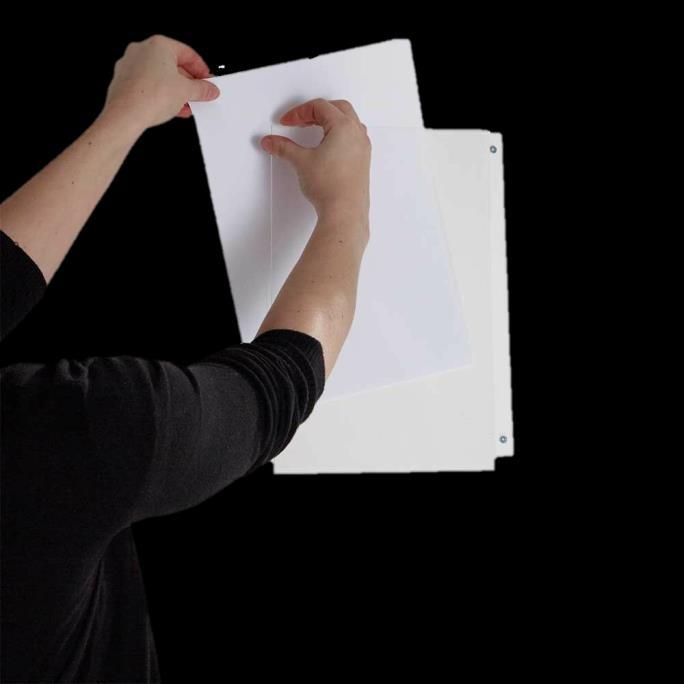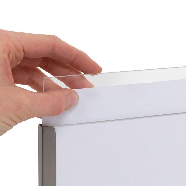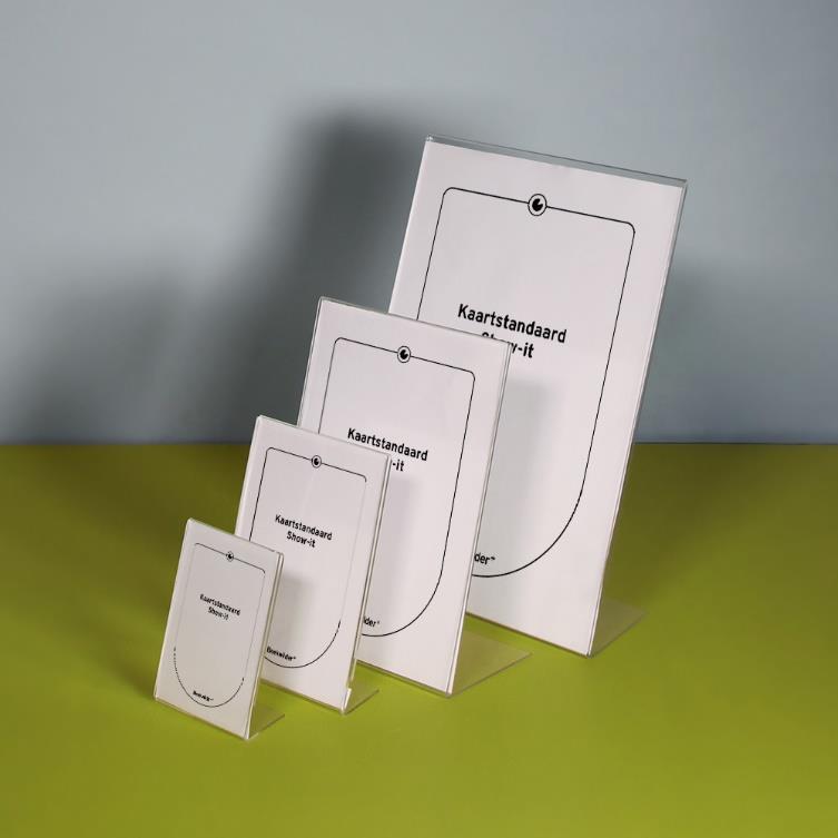 In de acryl kaarthouders schuif je de papieren communicatie. De kaarthouders hebben 4 boorgaatjes en kun je door middel van C of S haakjes aan elkaar koppelen. Ze zijn in verschillende maten leverbaar en oneindig koppelbaar.