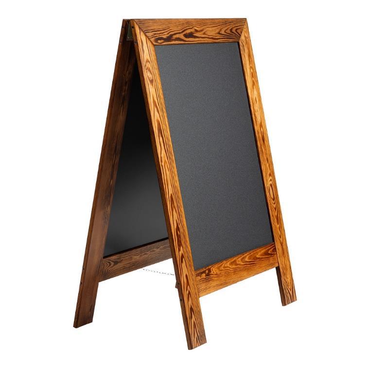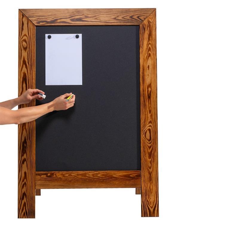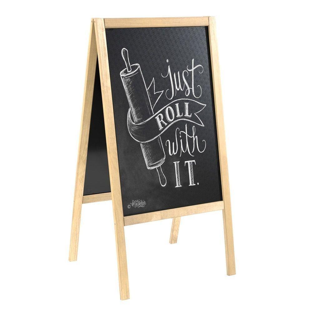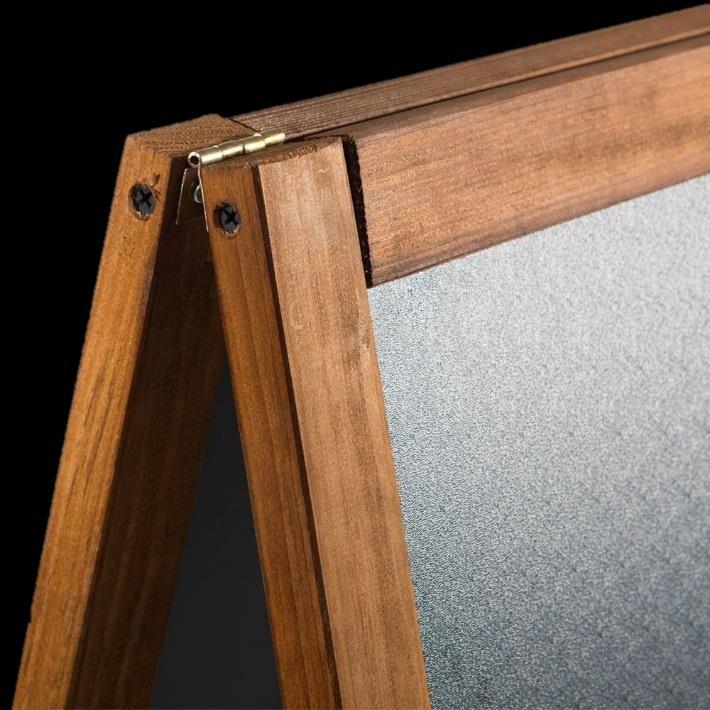 Deze dubbelzijdige A-standaard van 60 x118 cm heeft een krijtbord finish. Je kunt het bord inklappen zodat je het makkelijk kunt verplaatsen. In licht hout en in donker hout leverbaar. € 95,90 per stuk