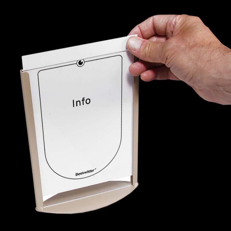 Vloerstandaard Element is een Beekwilder ontwerp waarbij eenvoud en gebruiksgemak voorop stonden. Door zijn kleur en design past hij in elke huisstijl. De Element is leverbaar in A2, A3 en A4 formaat. Je koopt de standaard compleet met acrylaat beschermplaatjes, waar je papieren communicatie tussen past. Wil jij de element in je huiskleur of op een ander formaat? Vanaf 50 stuks maken we het op maat voor je.