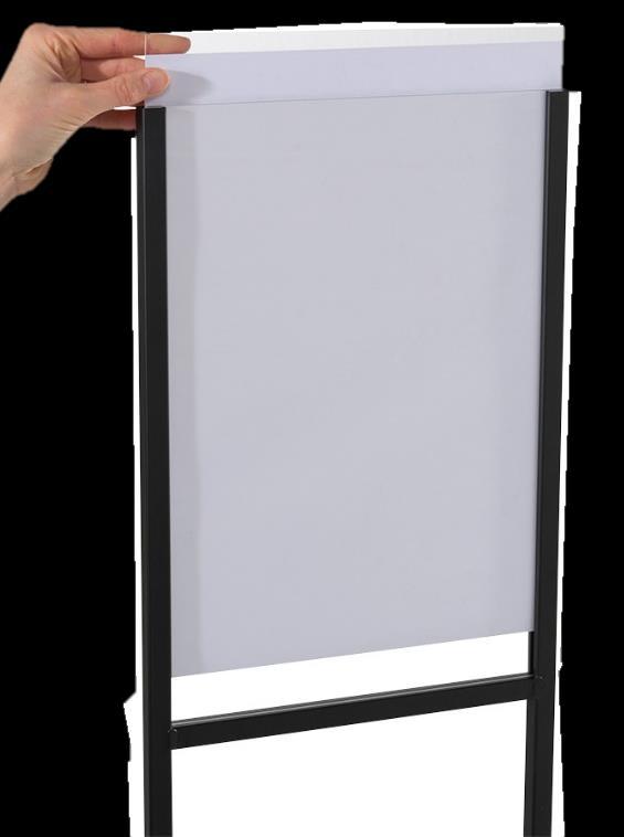 Het stoepbord is van staal, weegt 24kg en heeft een beschermrand langs de voet tegen krassen. Je plaatst je A1 communicatie eenvoudig in de waterdichte kliklijst met een profiel van 44mm. Meer vertellen?