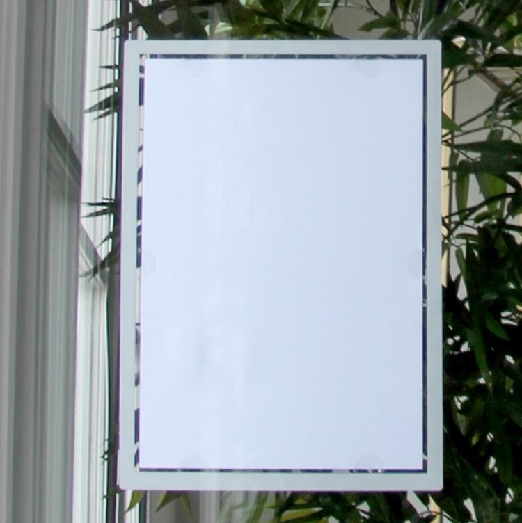 Dit is handig! In deze affichedrager plaats je drukwerk en d.m.v. de zelfklevende randen plak je het geheel in één keer tegen het raam. Sneller kan niet en het ziet er ook nog veel mooier uit dan informatie dat met plakband tegen het raam geplakt is. Deze kwaliteit laat geen lijmresten achter en kun je keer op keer gebruiken. De affichedrager is leverbaar in A3 en A4 met een witte of oranje rand.