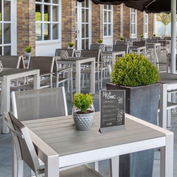 Staat je standaard buiten of in de openbare ruimte? Dan is een kaartstandaard met een verzwaarde voet een goede keuze.