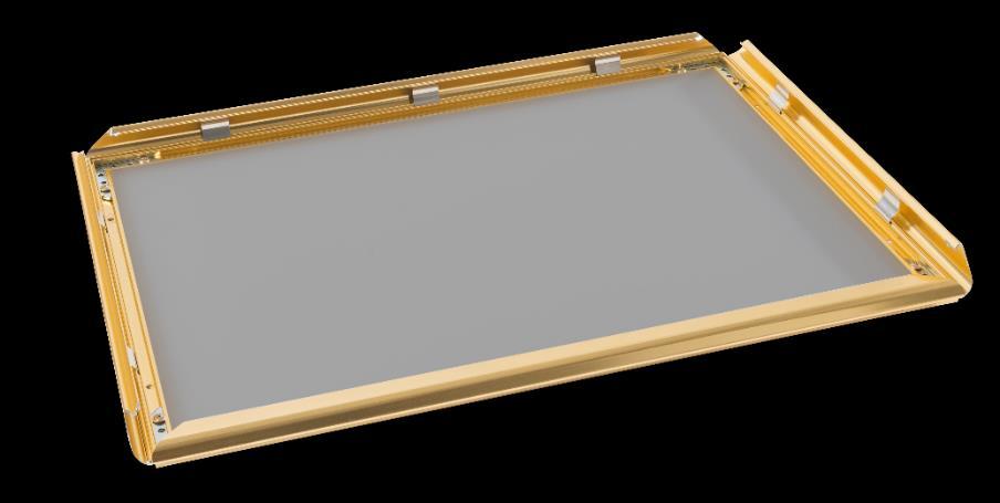 Deze infostandaard is daarom uitgevoerd in een knock down variant. Met een meegeleverd inbussleuteltje zet je deze gouden
