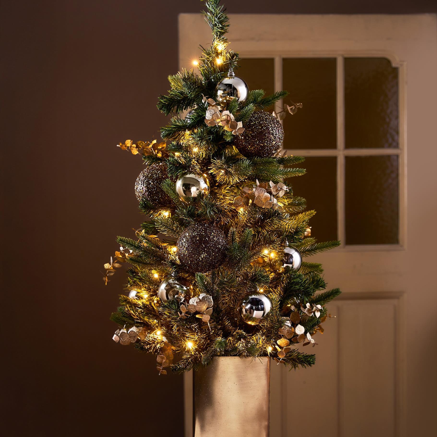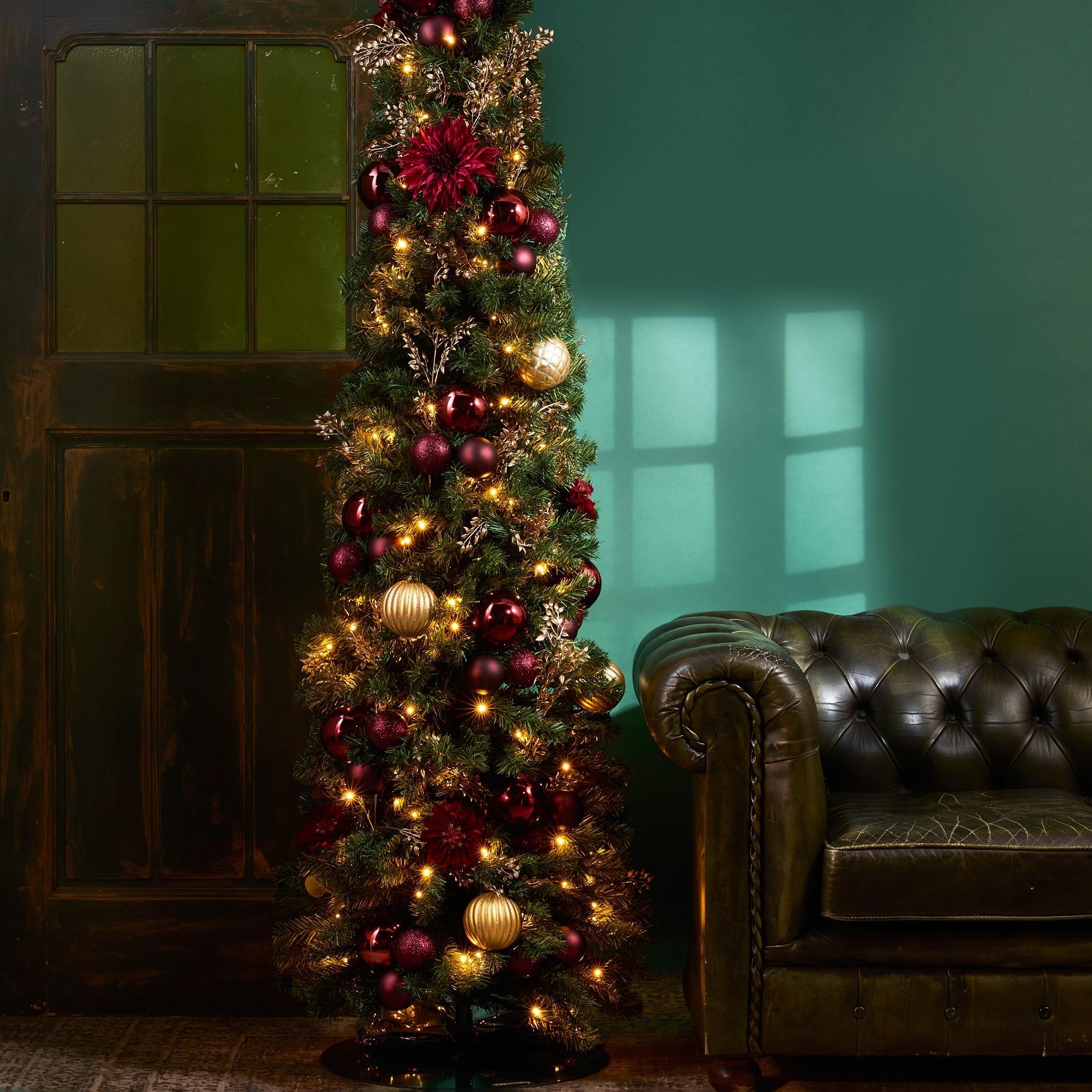Gedecoreerde kerstboom Burgundy met 56 LED lampjes in gouden pot 100cm geleverd inclusief handige opbergdoos 159,00
