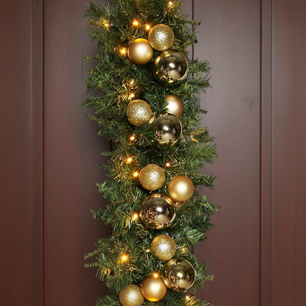 Gedecoreerde dennenrank Delightfull Gold, 270cm met 80 lampjes kant en klaar geleverd in opbergdoos 139,00