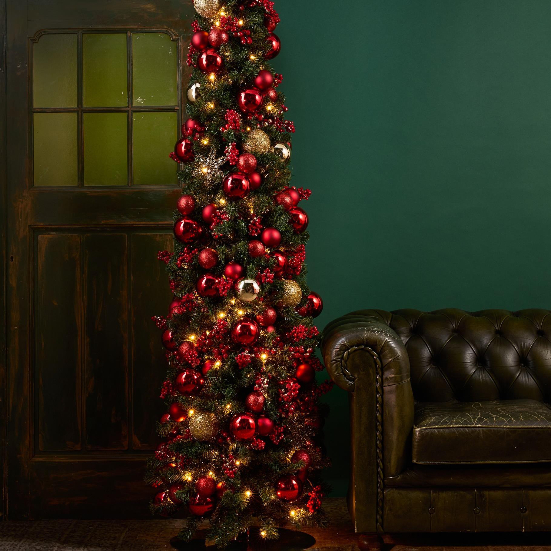Gedecoreerde kerstboom Burgundy 240cm inclusief 224 LED lampjes