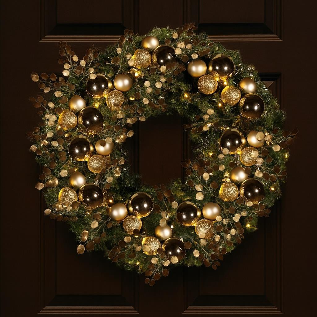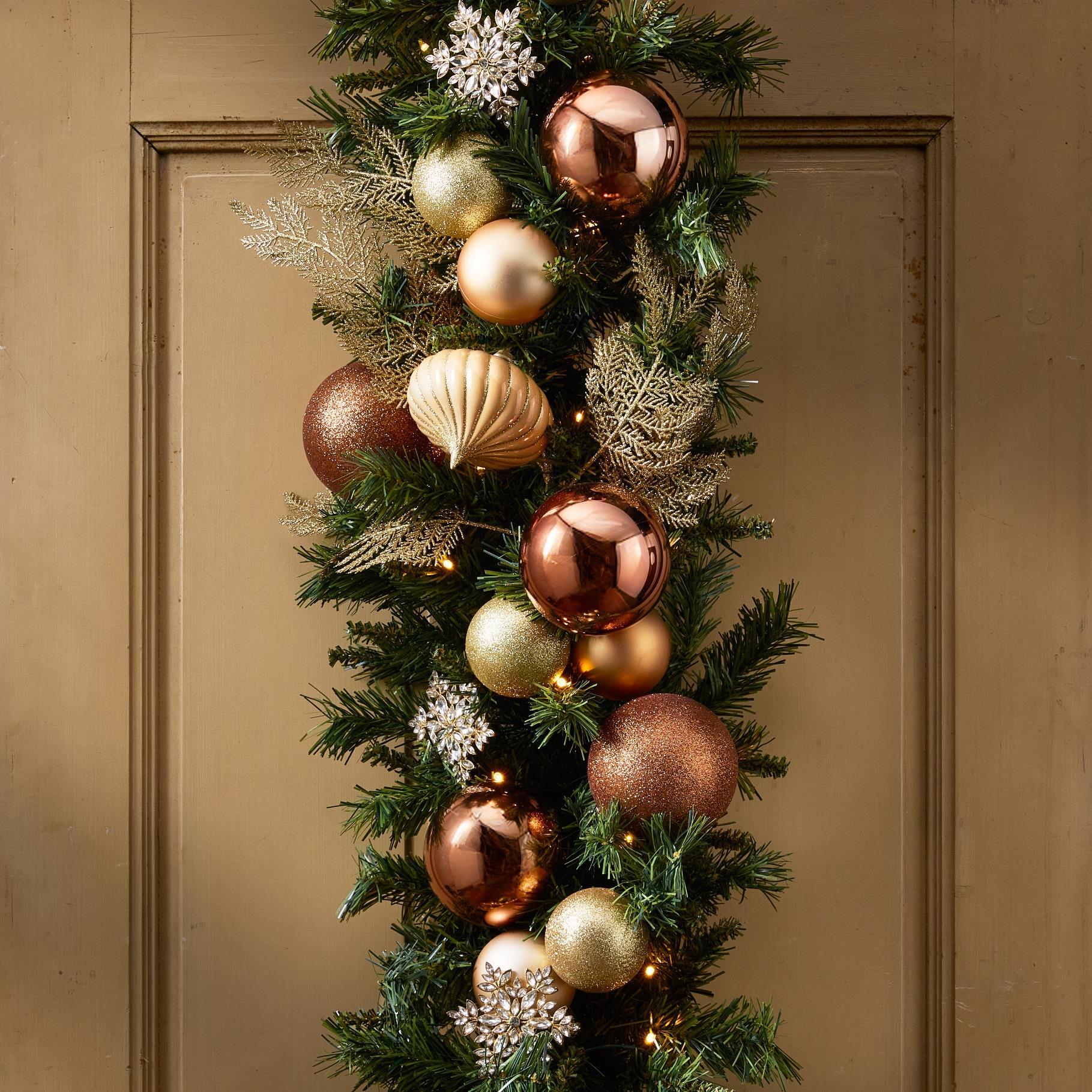 Gedecoreerde dennenkrans Gold Copper Luxe Ø 100cm met 80 LED lampjes wordt met opbergdoos geleverd